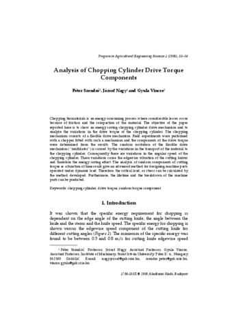 Szendrő, Péter and Nagy, József and Vincze, Gyula (2005) Analysis of Chopping Cylinder Drive Torque Components. Progress in Agricultural Engineering Sciences, 1 (1). pp. 33-56. ISSN 1786-335X