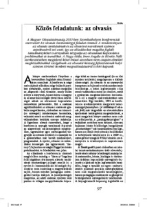 Szilágyi, Barnabás (2012) Közös feladatunk: az olvasás. Iskolakultúra, 12 (5). pp. 97-99. ISSN 1215-5233