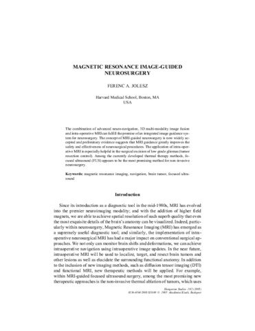 Jolesz, Ferenc A. (2005) Magnetic Resonance Image-Guided Neurosurgery. Hungarian Studies, 19 (2). pp. 233-242. ISSN 0236-6568