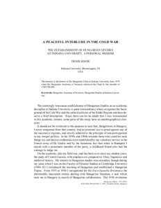 Sinor, Denis (2005) A Peaceful Interlude in the Cold War. Hungarian Studies, 19 (2). pp. 243-253. ISSN 0236-6568