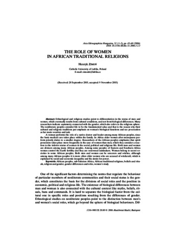 Zimoň, Henryk (2006) The Role of Women in African Traditional Religions. Acta Ethnographica Hungarica, 51 (1-2). pp. 43-60. ISSN 1216-9803