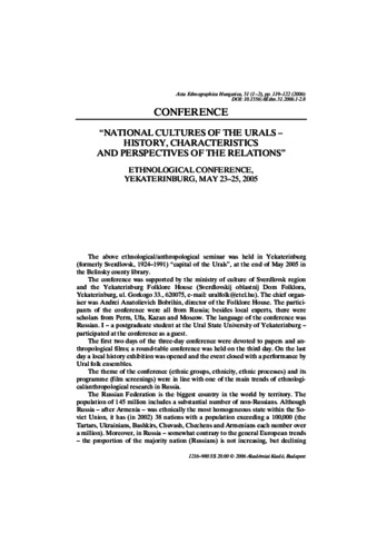 ETHNOLOGICAL CONFERENCE, YEKATERINBURG, MAY 23–25, 2005