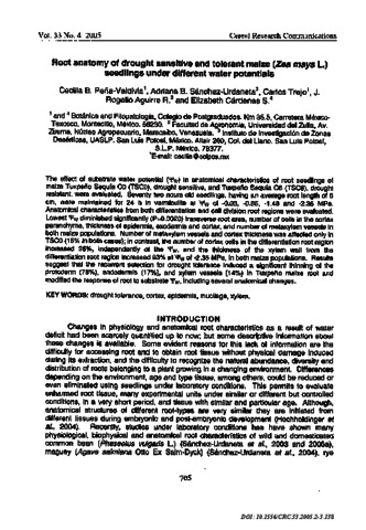 Peña-Valdivia, Cecilia B. and Sánchez-Urdaneta, Adriana B. and Trejo, Carlos and Aguirre R., J. Rogelio and Cárdenas S., Elizabeth (2005) Root anatomy of drought sensitive and tolerant maize (Zea mays L.) seedlings under different water potentials. Cereal Research Communications, 33 (4). pp. 705-712. ISSN 0133-3720