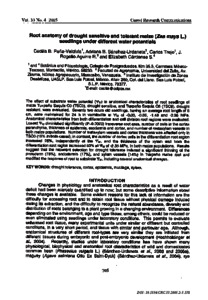 The effect of substrate water potential (Ψ <sub>W</sub> ) in anatomical characteristics of root seedlings of maize Tuxpeño Sequía C0 (TSC0), drought sensitive, and Tuxpeño Sequía C8 (TSC8), drought resistant, were evaluated. Seventy two hours old seedlings, having an average root length of 5 cm, were maintained for 24 h in vermiculite at Ψ <sub>W</sub> of −0.03, −0.65, −1.48 and −2.35 MPa. Anatomical characteristics from both differentiation and cell division root regions were evaluated. Lowest Ψ <sub>W</sub> diminished significantly (P=0.0020) transverse root area, number of cells in the cortex parenchyma, thickness of epidermis, exodermis and cortex, and number of metaxylem vessels in both maize populations. Number of metaxylem vessels and cortex thickness was affected only in TSC0 (15% in both cases); in contrast, the number of cortex cells in the differentiation root region increased 25%, independently of the Ψ <sub>W</sub> , and the thickness of the xylem wall from the differentiation root region increased 93% at Ψ <sub>W</sub> of −2.35 MPa, in both maize populations. Results suggest that the recurrent selection for drought tolerance induced a significant thinning of the protoderm (78%), endodermis (17%), and xylem vessels (14%) in Tuxpeño maize root and modified the response of root to substrate Ψ <sub>W</sub> , including several anatomical changes.