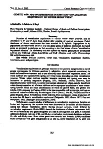 Duration of vernalization requirement in various winter wheat cultivars and its inheritance in F <sub>1</sub> and F <sub>2</sub> have been studied after crossing of contrast genotypes. Partial dominance of shorter requirement has been revealed in F <sub>1</sub> hybrids. Segregations in F <sub>2</sub> populations have shown the action of two non-allelic genes of different expression. Revealed genes are proposed to designate as Vrd according to the first letters of term “vernalization requirement duration”. In conformity with this symbol the haploid genotypes of investigated cultivars are: Vrd1 vrd2 — Norin 1 and Olvia; vrd1 Vrd2 — Chayka; vrd1 vrd2 — Mironovskaya 808 and Eritrospermum 604.