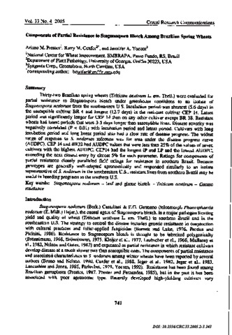 Prestes, Ariano M. and Cunfer, Barry M. and Yocum, Jennifer A. (2005) Components of partial resistance to Stagonospora blotch among Brazilian spring wheats. Cereal Research Communications, 33 (4). pp. 741-746. ISSN 0133-3720
