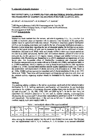 Giczi, Zs. and Kalocsai, R. and Schmidt, R. and Szakál, P. (2006) The effect of N, P, K fertilisation and bacterial inoculation on the oxidation of elemental sulphur in Danube alluvial soil. Cereal Research Communications, 34 (1). pp. 187-190. ISSN 0133-3720