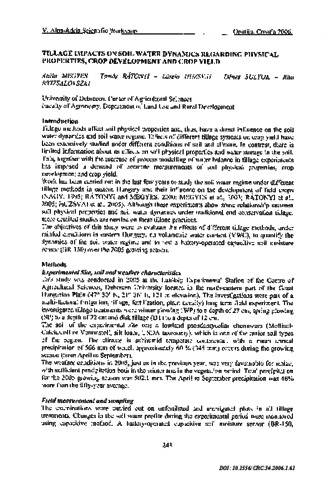 Megyes, Attila and Rátonyi, Tamás and Huzsvai, László and Sulyok, Dénes and Nyizsalovszki, Rita (2006) Tillage impacts on soil water dynamics regarding physical properties, crop development and crop yield. Cereal Research Communications, 34 (1). pp. 243-246. ISSN 0133-3720