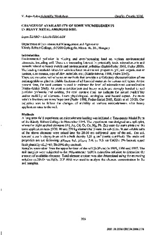 Szabó, Lajos and Szegedi, László (2006) Changes of availability of some microelements in heavy metal amended soil. Cereal Research Communications, 34 (1). pp. 303-306. ISSN 0133-3720