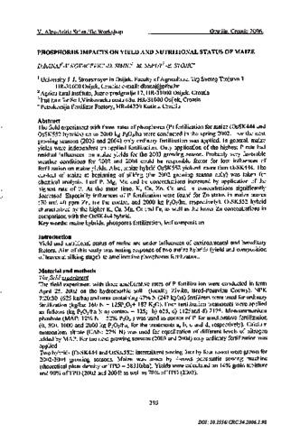 The field experiment with three rates of phosphorus (P) fertilization for maize (OsSK444 and OsSK552 hybrids) up to 2000 kg P <sub>2</sub> O <sub>5</sub> /ha were conducted in the spring 2002. For the next growing seasons (2003 and 2004) only ordinary fertilization was applied. In general, maize yields were independent on applied fertilization. Only application of the highest P rate had residual influences on maize yields for the 2003 growing season. Probably very favorable weather conditions for 2002 and 2004 could be responsible factor for low influences of fertilization on maize yields. Also, maize hybrid OsSK552 yielded more than OsSK444. The ear-leaf of maize at beginning of silking (the 2002 growing season only) was taken for chemical analysis. Leaf P, Mg, Mn and Fe concentrations increased by application of the highest rate of P. At the same time, K, Ca, Zn, Cu and Fe concentrations significantly decreased. Especially influences of P fertilization were found for Zn status in maize leaves (70 and 40 ppm Zn, for the control and 2000 kg P <sub>2</sub> O <sub>5</sub> /ha, respectively). OsSK552 hybrid characterized by the higher K, Ca, Mg, Cu and Fe, as well as the lower Zn concentrations in comparison with the OsSK444 hybrid.