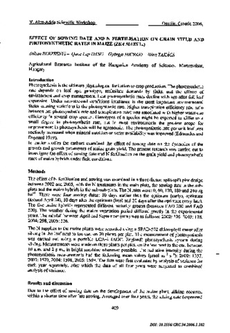 Berzsenyi, Zoltán and Dang, Quoc Lap and Micskei, Györgyi and Takács, Nóra (2006) Effect of sowing date and N fertilisation on grain yield and photosynthetic rates in maize (Zea mays L.). Cereal Research Communications, 34 (1). pp. 409-412. ISSN 0133-3720
