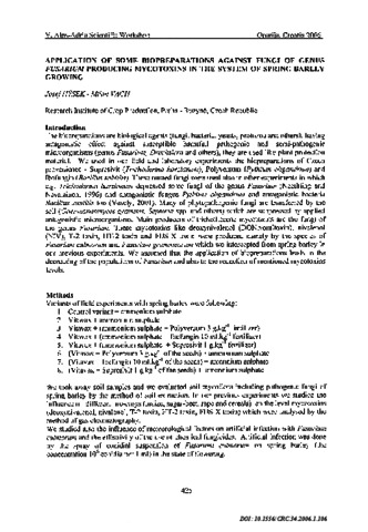 Hýsek, Josef and Vach, Milan (2006) Application of some biopreparations against fungi of genus Fusarium producing mycotoxins in the system of spring barley growing. Cereal Research Communications, 34 (1). pp. 425-428. ISSN 0133-3720