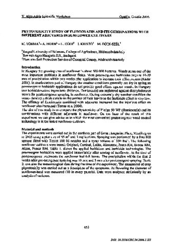 Torma, M. and Horn, A. and Hódi, L. and Kristó, I. and Hódi-Szél, M. (2006) Phytotoxicity study of flumioxazin and its combinations with different adjuvants in sunflower cultivars. Cereal Research Communications, 34 (1). pp. 453-456. ISSN 0133-3720