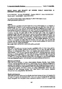 Trials with seven genotypes of winter wheat were set up as RCB design at four locations in continental part of Croatia in three repetitions during 2004 and 2005 year. Grain yield and indirect quality traits were analyzed. Statistically significant differences for all traits were found among cultivars (G), locations (L) and years (Y), and for all interactions (GxL, GxY, LxY, GxLxY) except for the interaction GxLxY for protein and wet gluten content and for the interaction term GxL for grain yield. In 2004 year higher grain yields were realized as compared to 2005. The same trend has been reached for all analysed quality traits (2004 was better than 2005) except for sedimentation value. The highest grain yields, test weights and wet gluten content were realized at location Osijek. Highest protein content and sedimentation value were found at location Nova Gradiska. The most yielding genotypes with lowest coefficient of variation for grain yield over locations and years were Seva, Demetra and Srpanjka, while the most favorable quality traits with the lowest coefficient of variation were found for Golubica, Zitarka and Panonka.