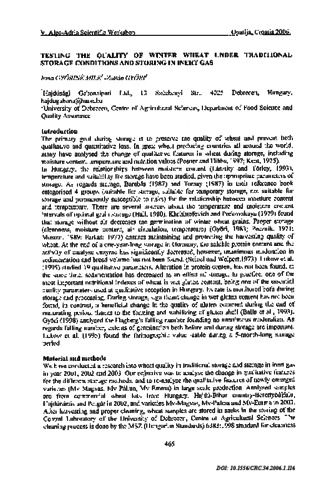 Győriné Mile, Irma and Győri, Zoltán (2006) Testing the quality of winter wheat under traditional storage conditions and storing in inert gas. Cereal Research Communications, 34 (1). pp. 465-468. ISSN 0133-3720