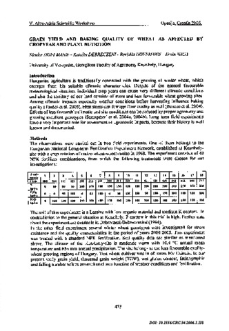 Hoffmann, Sándor and Debreczeni, Katalin and Hoffmann, Borbála and Nagy, Ervin (2006) Grain yield and baking quality of wheat as affected by cropyear and plant nutrition. Cereal Research Communications, 34 (1). pp. 473-476. ISSN 0133-3720