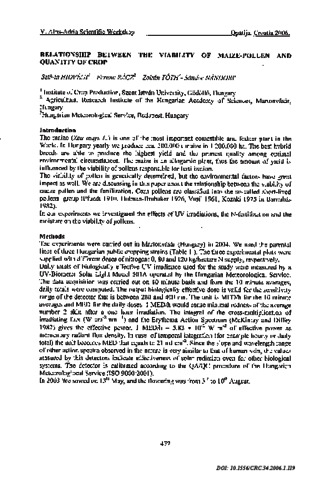 Hidvégi, Szilvia and Rácz, Ferenc and Tóth, Zoltán and Nándori, Sándor (2006) Relationship between the viability of maize-pollen and quantity of crop. Cereal Research Communications, 34 (1). pp. 477-480. ISSN 0133-3720