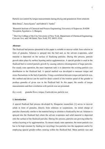 Dencs, B. and Gyenis, János and Tardos, I. G. (2001) Particle Size Control by Torque Measurements in Fluidized Beds during Drying and Granulation from Solutions. In: 9th International Summer School of Chemical Engineering, 2001. szeptember 18-24., Sozopol, Bulgaria.