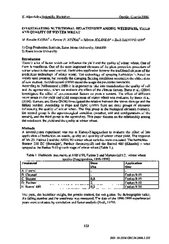 Kassai, M. Katalin and Nyárai, Ferenc H. and Jolánkai, Márton and Szentpétery, Zsolt (2006) Investigating nutritional relationship among weediness, yield and quality of winter wheat. Cereal Research Communications, 34 (1). pp. 533-536. ISSN 0133-3720
