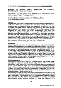 The objective of research was to determine grain yield, hectoliter weight, grain proteins and starch content of 17 winter barley cultivars from trials at four locations (Tovarnik, Nova Gradiska, Pozega and Osijek) and during three years (2002 to 2005). All traits were significantly influenced by year (Y), location (L) and genotype (G) while sowing rate (300 and 450 seeds per m <sup>2</sup> ) and genotype*sowing rate (G*D) did not affect trait means (P>0,05). Interactions as year* sowing rate (Y*D), location*sowing rate (L*D) and year*location*sowing rate caused significant influence to grain yield and proteins and starch content in grains. Regression coefficient “bi”, ecovalence “W <sub>i</sub> ” and variance of deviations from regressions “S <sup>2</sup> d <sub>i</sub> ” pointed out best performance of cultivars Barun, Bingo and Gvozd in more intensive growing conditions due to its top yielding, lowest proteins and rich starch content of grains. Opposite to this, best yield and quality performance of cultivars at low input production could be expected from cultivars Plaisant, Vanessa, Favorit, Lord and Heraklo.