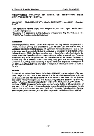 Precipitation influence on edible oil production from sunflower crop in Croatia