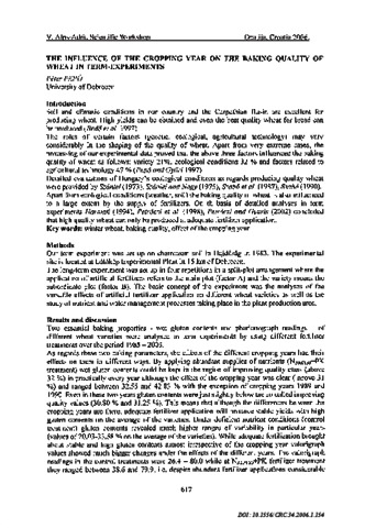 The influence of the cropping year on the baking quality of wheat in term-experiments