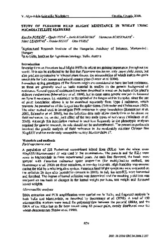 Puskás, Katalin and Vida, Gyula and Komáromi, Judit and Bürstmayr, Hermann and Lemmens, Marc and Bedo, Zoltán and Veisz, Ottó (2006) Study of Fusarium head blight resistance in wheat using microsatellite markers. Cereal Research Communications, 34 (1). pp. 629-632. ISSN 0133-3720