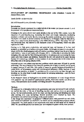 Sipos, Tamás and Halász, Erika (2006) Development of cropping technology and fodder value of perennial rye. Cereal Research Communications, 34 (1). pp. 661-663. ISSN 0133-3720