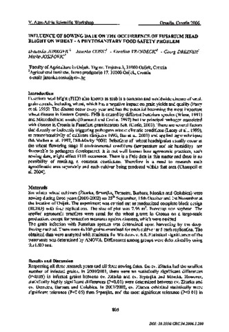 Jurkovic, Drazenka and Cosic, Jasenka and Vrandecic, Karolina and Drezner, Georg and Josipovic, Marko (2006) Influence of sowing date on the occurrence of fusarium head blight on wheat — A phytosanitary food safety problem. Cereal Research Communications, 34 (1). pp. 805-807. ISSN 0133-3720
