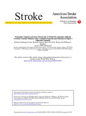 Veltkamp, R. and Domoki, Ferenc and Bari, Ferenc (1998) Potassium channel activators protect the N-methyl-D-aspartate-induced cerebral vascular dilation after combined hypoxia and ischemia in piglets. STROKE, 29 (4). pp. 837-842. ISSN 0039-2499