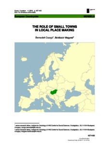 Csurgó, Bernadett and Megyesi, Boldizsár (2016) THE ROLE OF SMALL TOWNS IN LOCAL PLACE MAKING. European Countryside, 2016 (4). pp. 427-443. ISSN 1803-8417