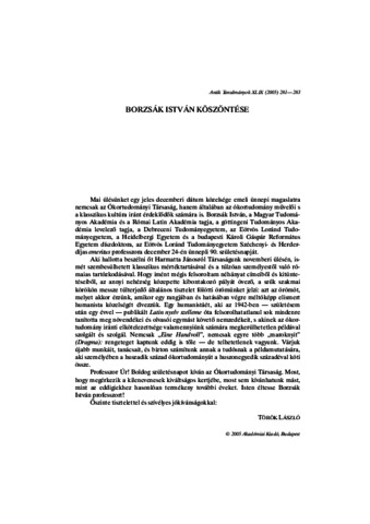 Török, László (2005) Borzsák István köszöntése. Antik Tanulmányok, 49 (1-2). p. 281. ISSN 0003-567X