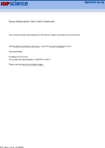 Janosov, Milán and Virágh, Csaba and Vásárhelyi, Gábor and Vicsek, Tamás (2017) Group chasing tactics: how to catch a faster prey. New Journal of Physics, 19 (5). pp. 1-17. ISSN 1367-2630