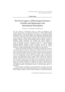 The First Congress of Physiological Sciences of Serbia and Montenegro with International Participation (November 9–12, 2005, Belgrade, Serbia and Montenegro)