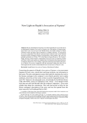 Mikusi, Balázs (2005) New Light on Haydn's Invocation of Neptune. Studia Musicologica Academiae Scientiarum Hungaricae, 46 (3-4). pp. 237-255. ISSN 0039-3266