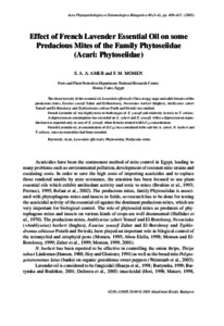 Amer, S. A. A. and Momen, F. M. (2005) Effect of French lavender essential oil on some predacious mites of the family Phytoseiidae (Acari: Phytoseiidae). Acta Phytopathologica et Entomologica Hungarica, 40 (3-4). pp. 409-415. ISSN 0238-1249