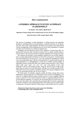 Juhász, G. and Csikós, GY. and Sass, M. (2001) A POSSIBLE APPROACH TO STUDY AUTOPHAGY IN DROSOPHILA. Acta Biologica Hungarica, 52 (4). pp. 485-490. ISSN 0236-5383