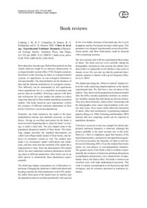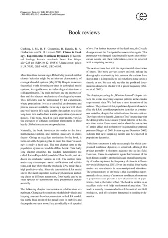 Cushing, J. M., R. F. Costantino, B. Dennis, R. A. Desharnais and S. H. Henson 2003. Chaos in Ecology. Experimental Nonlinear Dynamics (Theoretical Ecology Series). Academic Press, San Diego, xiv+225 pp. ISBN: 0-12-198876-7, hard cover, price: EUR 70.95, GBP 46.95, USD 68.95; E. van der Maarel (ed.) 2005. Vegetation Ecology. Blackwell, Oxford, x+395 pp. ISBN: 0-632-05761-0, paperback, price: USD 79.95, GBP 34.99; S. Mazzoleni, G. di Pasquale, M. Mulligan, P. di Martino and F. Rego (eds.) 2004. Recent Dynamics of the Mediterranean Vegetation and Landscape. Wiley, Chichester, xiv+306 pp. ISBN: 0-470-09369-2, hard cover, price: EUR 165; Forget, P. M., J. E. Lambert, P. E. Hulme and S. B. Vander Wall (eds) 2005. Seed Fate: Predation, Dispersal and Seedling Establishment. CABI Publishing, Wallingford, xv+410 pp. ISBN: 0-85199-806-2, hard cover, price: GBP 75.00, USD 140.00;