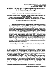 In intensive irrigated farming systems, the way to improve productive efficiency depends on the proper management of resources. With the implementation of the Alqueva global irrigation system in the southern Portugal region of Alentejo, agricultural intensification is a reality that imposes to farmers the challenge of producing more and more efficiently, ensuring the farming systems sustainability. This work resulted from an on-farm demonstration project carried out in two locations in the Alqueva region. Water use and water productivity were studied during 2012/2013 and 2013/2014, in three double cropping systems: a maize monoculture (MM) and two rotations, barley + maize-barley (BM-B) and sunflower-barley + maize (S-BM). Maize yields were influenced by the length of the crop cycle. In the rotation BM-B, with a predominance of autumn-winter crops, water requirements were lower and the total volume of irrigation applied was approximately half of the monoculture (5930 m<sup>3</sup>/ha and 13,230 m<sup>3</sup>/ha, respectively). When the potential crop yield was reached, maize had the higher water productivity (the highest value achieved was of 2.7 kg/m<sup>3</sup>). Overall, as a result of the lower yields achieved, the water productivity values indicate a less balanced performance of the S-BM rotation.