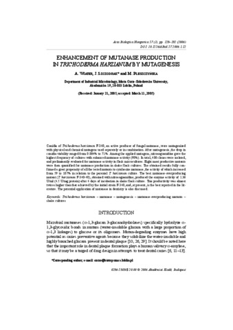 Wiater, A. and Szczodrak, J. and Pleszczyńska, M. (2006) Enhancement of mutanase production in Trichoderma harzianumby mutagenesis. Acta Biologica Hungarica, 57 (1). pp. 123-132. ISSN 0236-5383