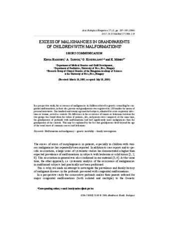 Hadzsiev, Kinga and Tárnok, A. and Kosztolányi, G. and Méhes, K. (2006) Excess of malignancies in grandparents of children with malformations? Acta Biologica Hungarica, 57 (1). pp. 137-140. ISSN 0236-5383