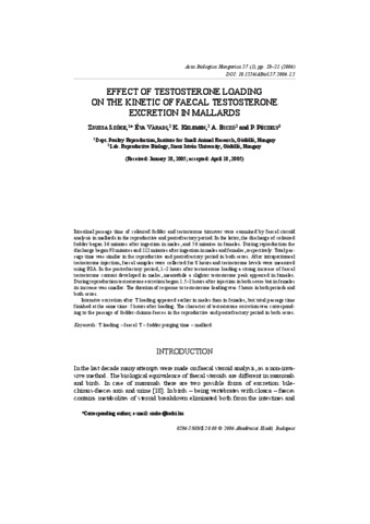 Szőke, Zsuzsa and Váradi, Éva and Kelemen, K. and Biczó, A. and Péczely, P. (2006) Effect of testosterone loading on the kinetic of faecal testosterone excretion in mallards. Acta Biologica Hungarica, 57 (1). pp. 13-21. ISSN 0236-5383