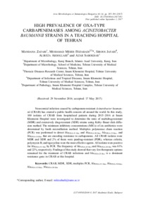 Zafari, Mandana and Feizabadi, Mohamad Mehdi and Jafari, Sirous and Abdollahi, Alireza and Sabokbar, Azar (2017) High prevalence of OXA-type carbapenemases among Acinetobacter baumannii strains in a teaching hospital of Tehran. Acta Microbiologica et Immunologica Hungarica, 64 (4). pp. 385-394. ISSN 1217-8950