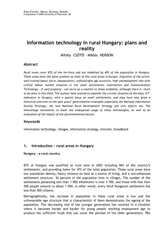 Rural areas cover 87% of the territory and are inhabited by 45% of the population in Hungary. These areas have the same problem as most of the rural areas in Europe: migration of the active, well-trained labour force, depopulation, unfavourable age structure, high unemployment rate with critical labour market situation in the small settlements. Information and Communication Technology – if used properly – can serve as a solution to these problems, although there is much to be done in this field. The authors have started to examine the current situation of the basic ICT-indicators in Hungary, with a special focus on small settlements, and they have also given a historical overview on the past years’ governmental strategies (especially the National Information Society Strategy), the new National Rural Development Strategy and civic efforts (ex. The telecottage movement) to boost the widespread usage of these technologies, as well as an evaluation of the impact of the aforementioned factors.