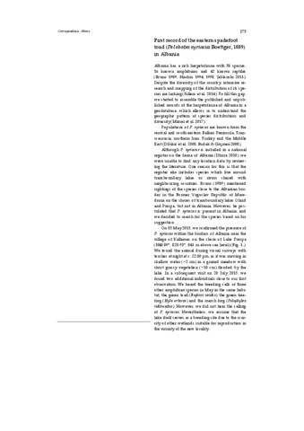 Szabolcs, István Márton and Mizsei, Edvárd (2017) First record of the eastern spadefoot toad (Pelobates syriacus Boettger, 1889) in Albania. NORTH-WESTERN JOURNAL OF ZOOLOGY, 13 (1). pp. 175-176. ISSN 1584-9074