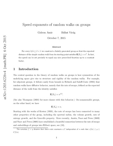 Virág, Bálint and Amir, Gideon (2017) Speed Exponents of Random Walks on Groups. INTERNATIONAL MATHEMATICS RESEARCH NOTICES (9). pp. 2567-2598. ISSN 1073-7928