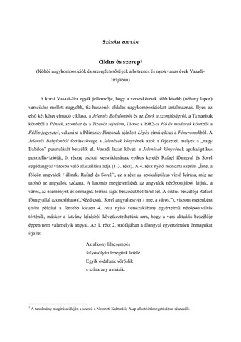 Szénási, Zoltán (2013) Ciklus és szerep : Költői nagykompozíciók és szereplehetőségek a hetvenes és nyolcvanas évek Vasadi-lírájában. VIGILIA, 78 (9). pp. 677-682. ISSN 0042-6024
