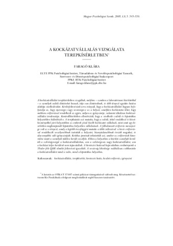 Faragó, Klára (2005) A kockázatvállalás vizsgálata terepkísérletben. Magyar Pszichológiai Szemle, 60 (3). pp. 343-370. ISSN 0025-0279