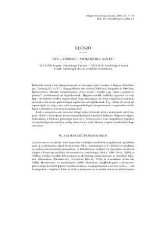 Dúll, Andrea and Szokolszky, Ágnes (2006) Előszó. Magyar Pszichológiai Szemle, 61 (1). pp. 3-8. ISSN 0025-0279
