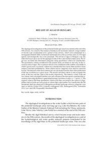 The algological investigations in the protected landscape areas have started at the end of the 19th century. As a result of the intensive floristical and taxonomic research a large number of records were accumulated over a period of last century, which were summarised in a monograph (Németh 2004). In the book mentioned above the occurrence data of 3,724 algal species and intraspecific taxa were processed. The red list of algae in Hungary was also elaborated as an aim to reveal the algological state of the water bodies in these areas. The algal taxa are listed into threatened categories using quantitative criteria for classification. The quantitative criteria considered in the present study are based on and only on the occurrence data of algae. The occurrence data is to be considered as the number of localities in which a given taxon was found, without any consideration how many times and how many authors it has been published by. Three criteria and six categories were used for create the red list. The measure of the first criterion (a) was calculated from the date of the publication of the last occurrence of a given taxon. The second and third criteria (r and v) express the rarity of the taxa and the value of the locality respectively. The numeric values of the last two criteria were calculated from the rows and columns of the data matrix contained the occurrence data using the Rényi's generalised entropy functions of order a = 1 and a= 2. The original values of the three quantitative criteria were then converted to the values of a logarithmic interval scale and were given as a three-digit code number. For classification the 504 threatened algal taxa observed in Hungarian protected landscape areas six categories were used as follows: Extinct (EX), Critically endangered (CR), Endangered (EN), Vulnerable (VU), Low risk (LR), Presumably threatened (PR).